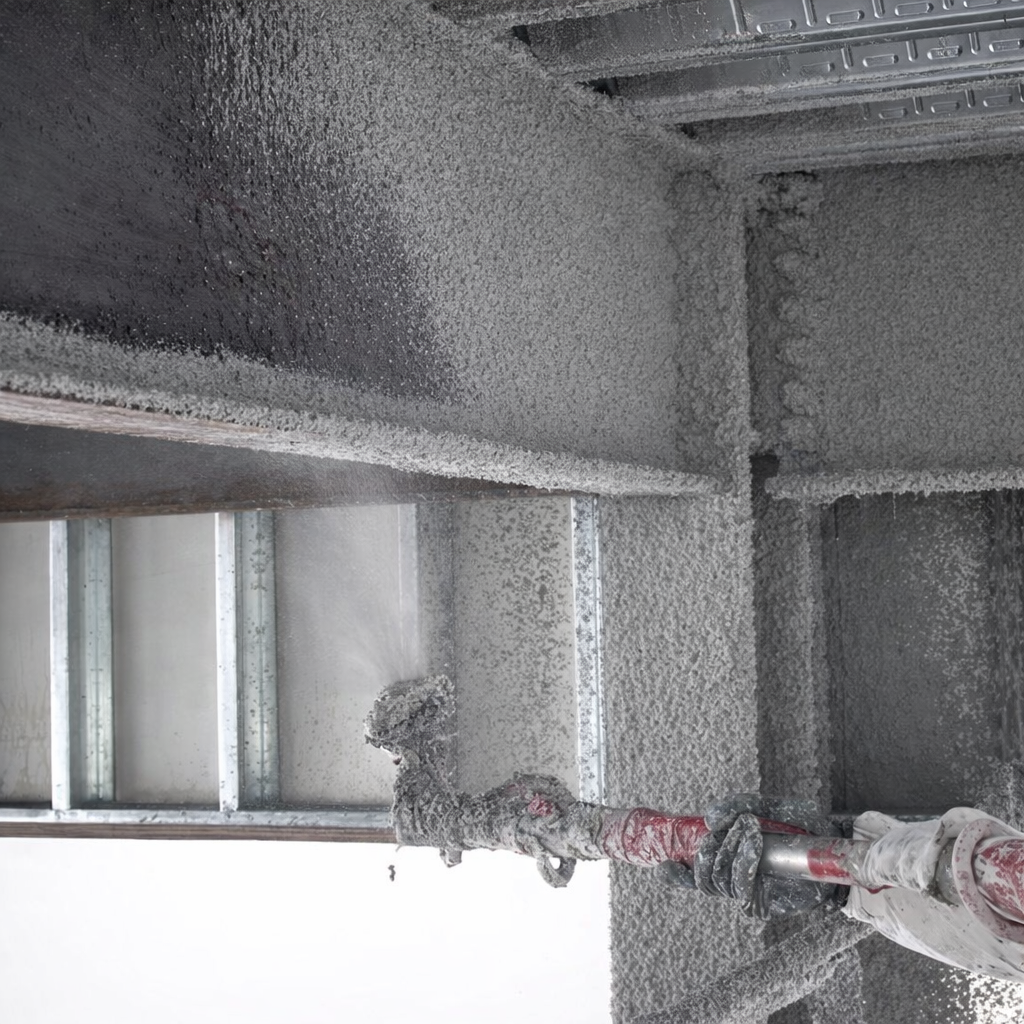 Applied coatings that protect structural steel from high heat, helping maintain integrity during a fire and meet building code requirements.
